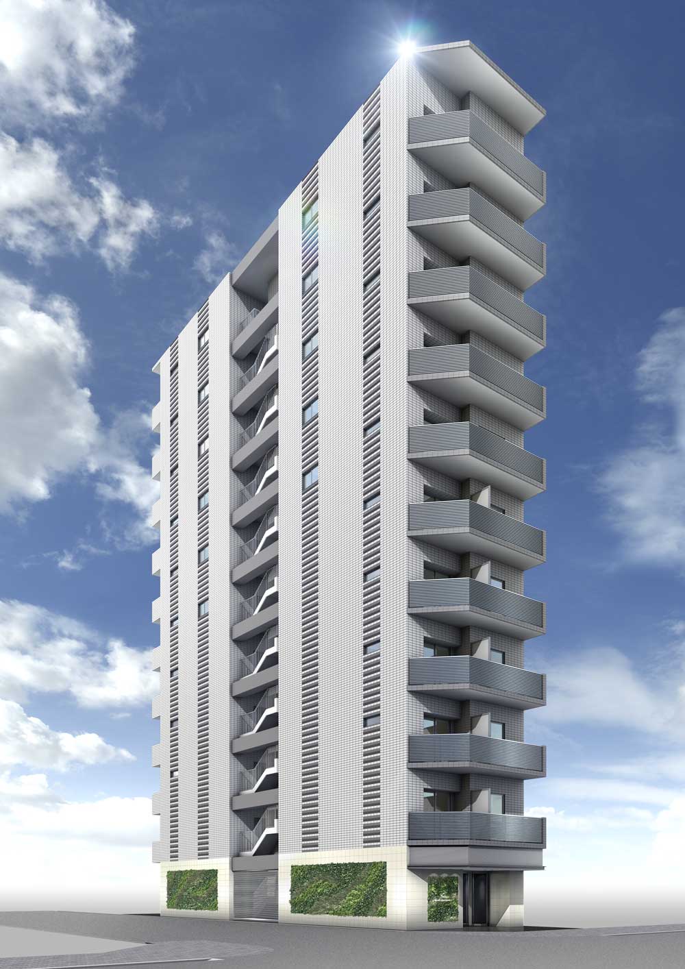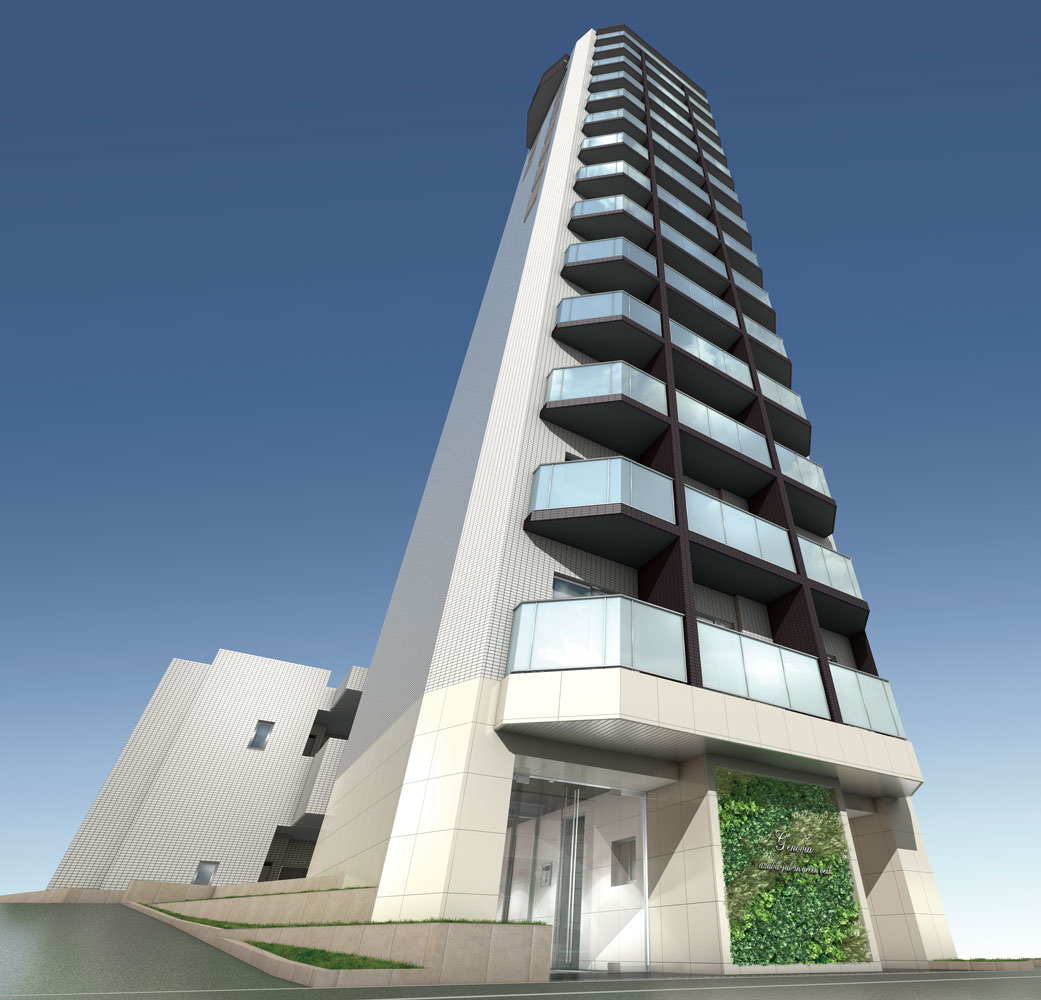 「GENOVIA Series」は、壁面緑化を意匠の一部としてデザインしております。マンションという限られた居住スペースに見た目にも美しい壁面緑化をデザインする、コンセプトは緑と人が共生するエコロジーの最大公約デザインです。